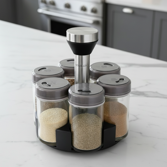 Organizador de Especias Giratorio en Acero Inoxidable 6 piezas